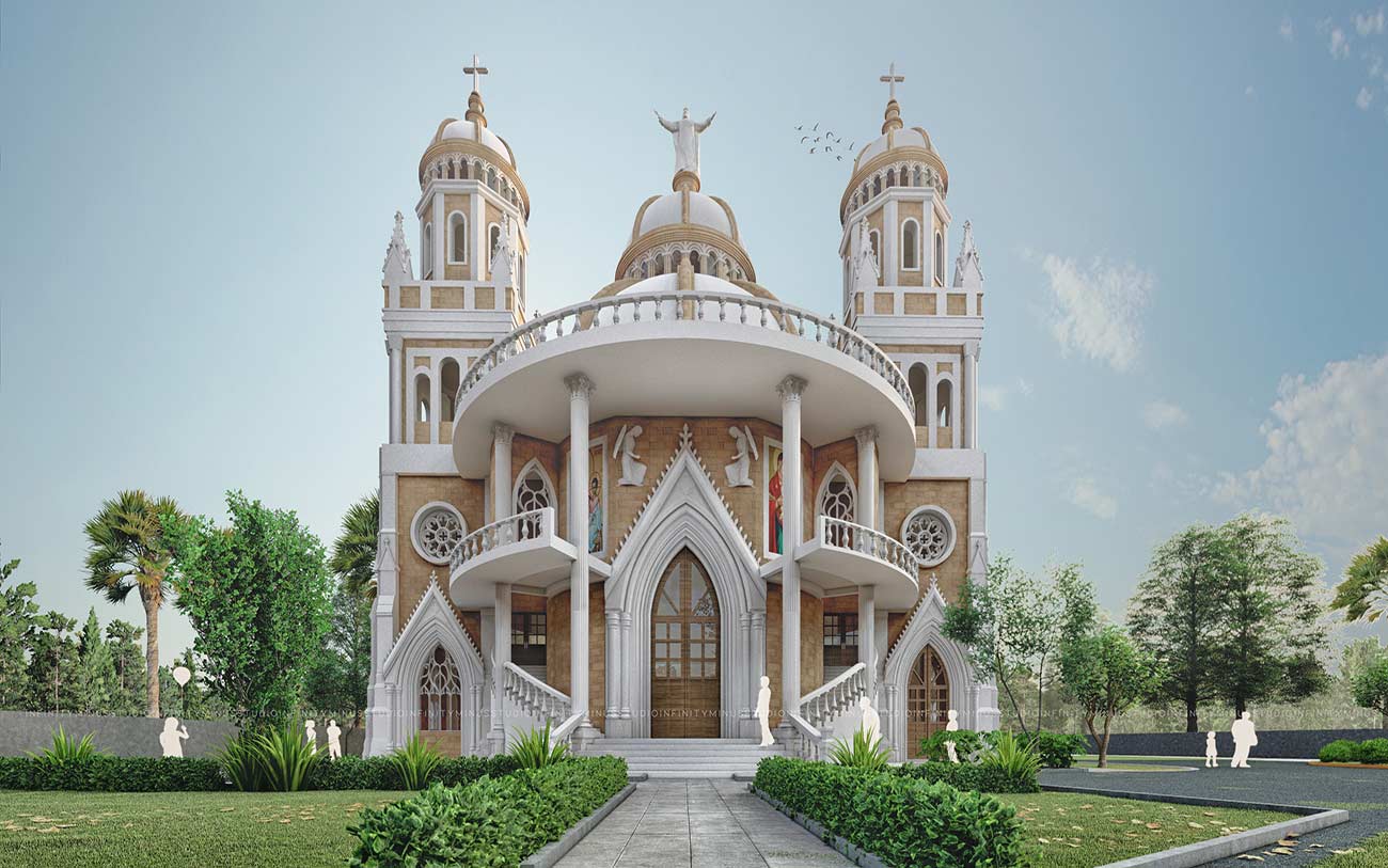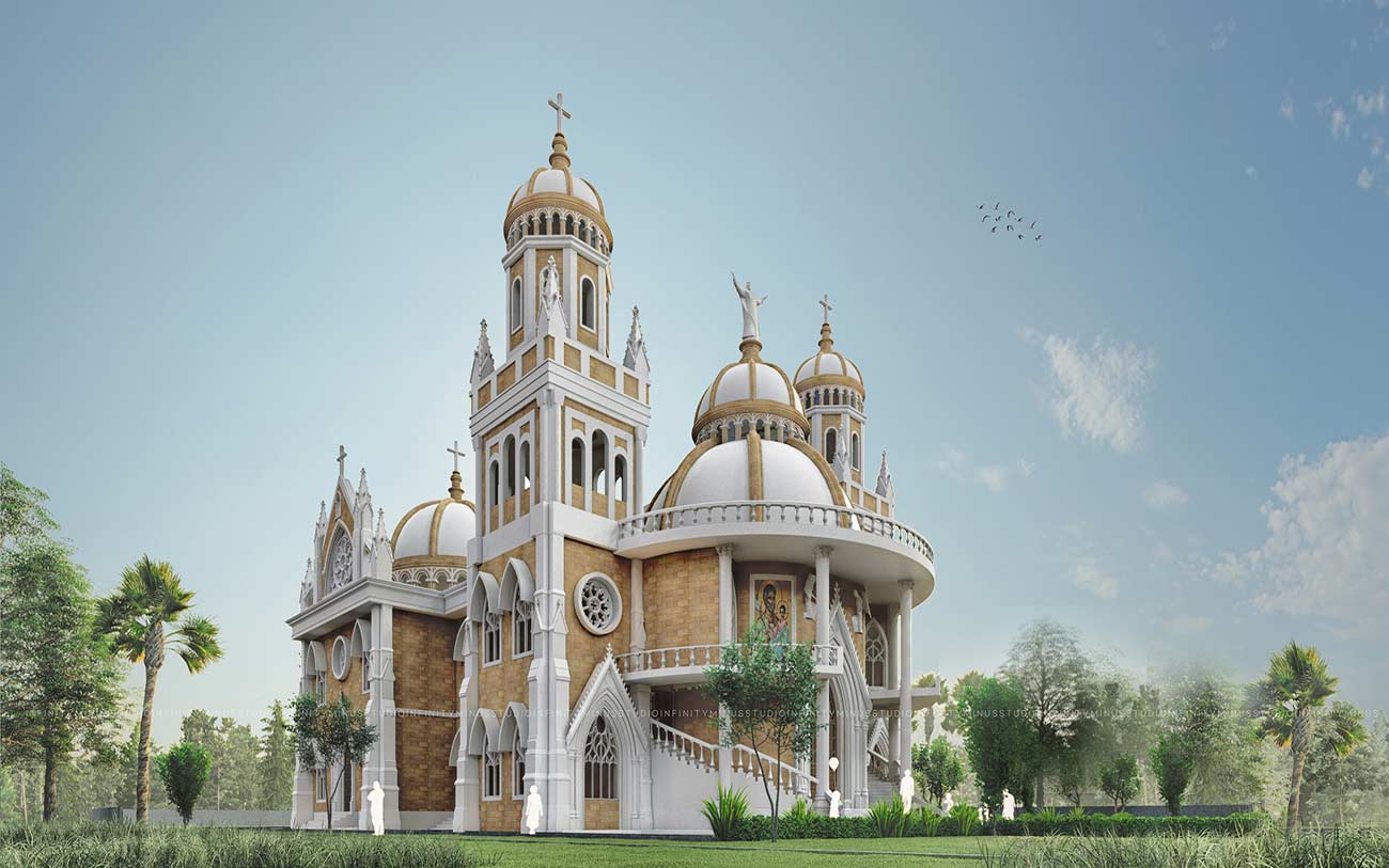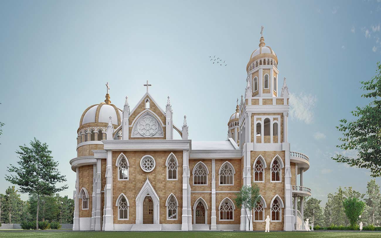 The overall style of the church is influenced by elements from ancient Greek and Roman church architecture. A peculiarity found in the western Catholic churches is the receptacle in which water is held for the baptism, known as the ‘Baptismal Font’ which is not found in Indian churches. In this church, we have introduced this fashion of using a ‘Baptismal Font’ as the central feature, since it is one of the most important rituals of the Christian churches. To embellish the church further, intricate ornamentation was carved in wood for the interior and plaster for the exterior. Locally available sandstone cladding was used for the outer surfaces.